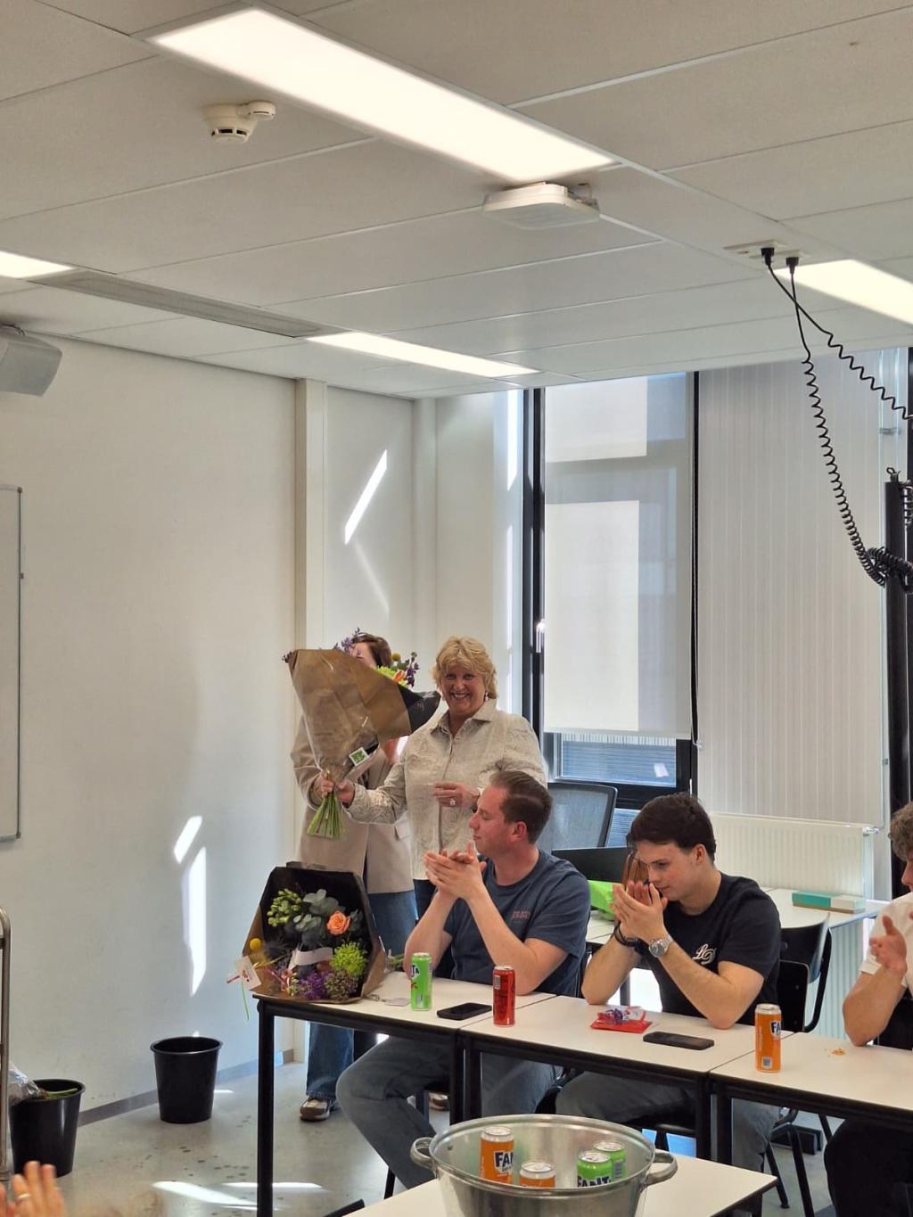 De begeleiders waren ook bij de huldiging aanwezig. Zij zijn trots op de studenten en zouden het zo weer zouden doen. Tot slot werd er ook Thea Nabring bedankt, die als Skills-coördinator een belangrijke rol heeft gespeeld in de ondersteuning van alle deelnemende studenten.